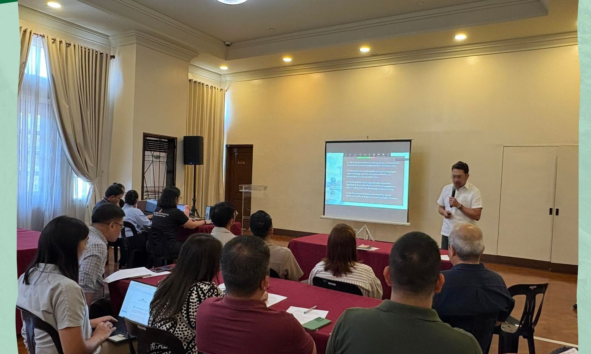 The consultation brought together representatives from key government agencies and heritage organizations, including the Metropolitan Manila Development Authority (MMDA), Department of Environment and Natural Resources (DENR), Philippine Coast Guard, various local government units (LGUs), and the International Council on Monuments and Sites (ICOMOS).